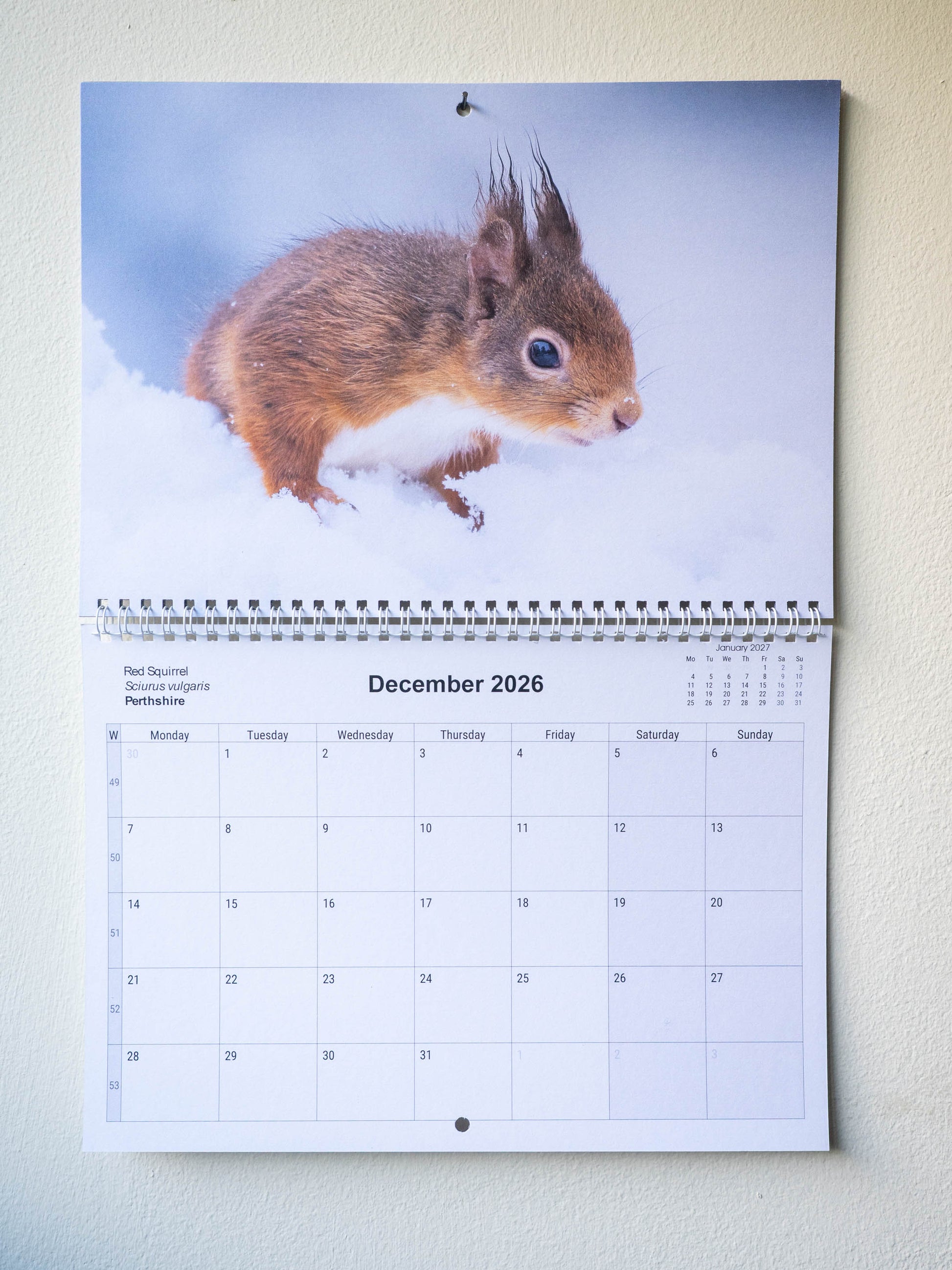 Folds open with 1 A4 side photo on top and 1 A4 side calendar at the bottom (effectively A3 sized calendar).